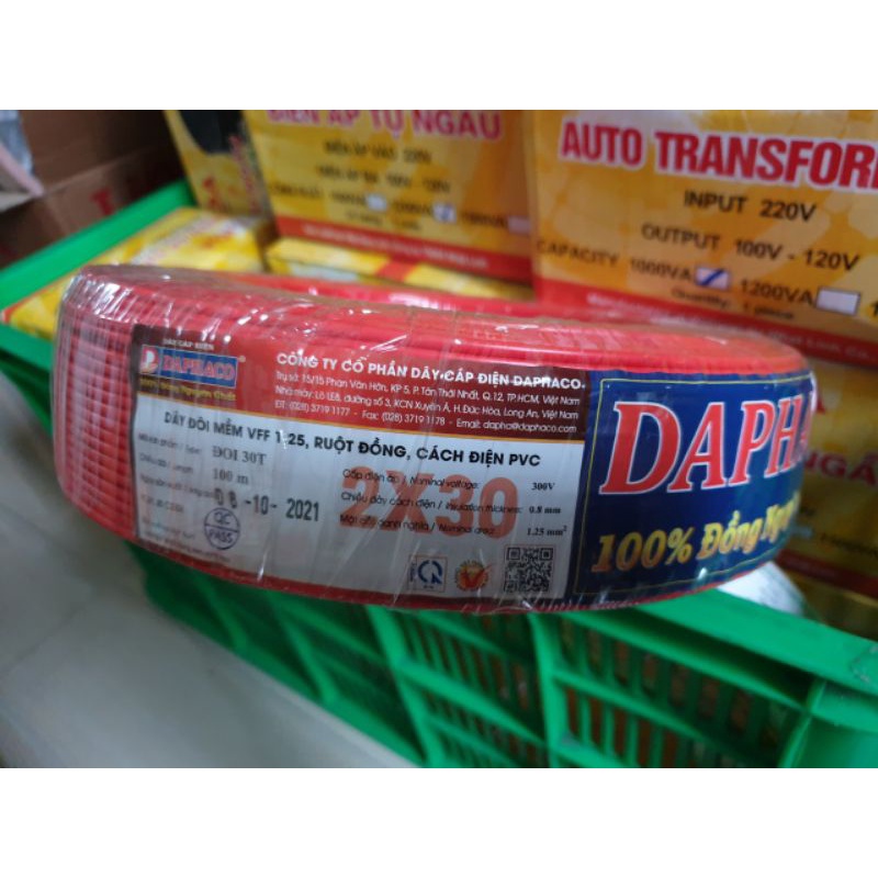 Giới thiệu Dây cáp điện đôi mềm Daphaco (dây súp đôi) 2x30T 1.25mm, bán lẻ theo mét