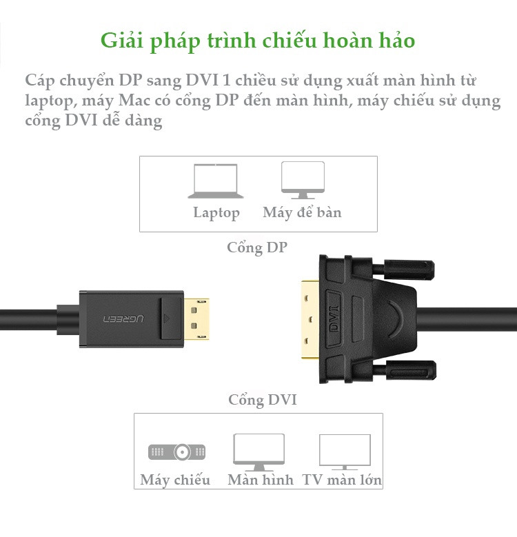 Cáp chuyển đổi DisplayPort sang DVI-D 24+1 DP103 là sản phẩm chính hãng UGREEN