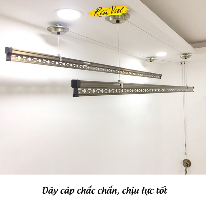 - Nên Thế giới rèm Việt cung cấp phụ kiện Dây Cáp Giàn Phơi Thông Minh riêng lẻ để quý khách hàng có thể đặt hàng về thay cho dây cáp giàn phơi ở nhà khi dây cáp xuống cấp mà không phải tốn nhiều chi phí để thay cả bộ giàn phơi.