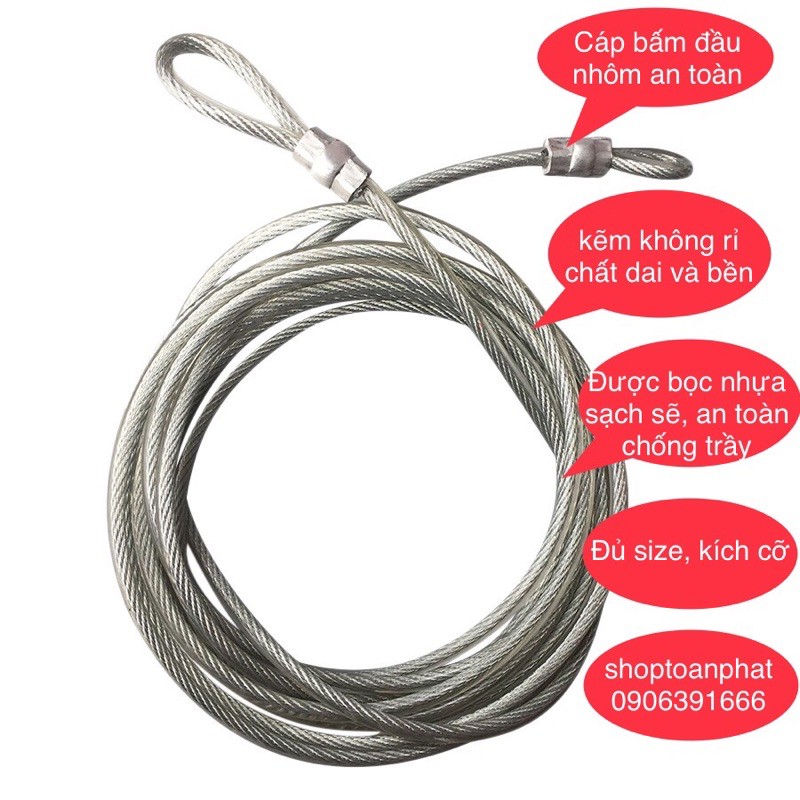 Dây cáp khoá xe máy bọc nhựa- Cáp khoá xe 0,8m,1m,2m,3m,5m,8m,10m