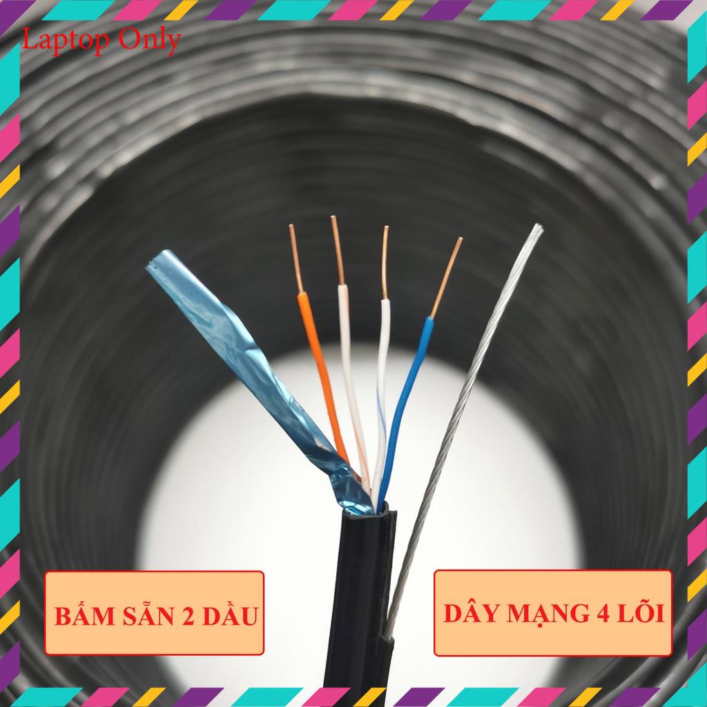 * Dây cáp mạng 4 sợi đồng nguyên chất có gia cường, bọc bạc bấm sẵn 2 đầuDây mạng 4 sợi đồng nguyên chất, độ tinh khiết đến 99,9% dùng để truyền tải tín hiệu mạng Lan ( chuẩn 10/100mb, chuẩn mạng dân dụng phổ thông ) hoặc mạng điện thoại bàn.