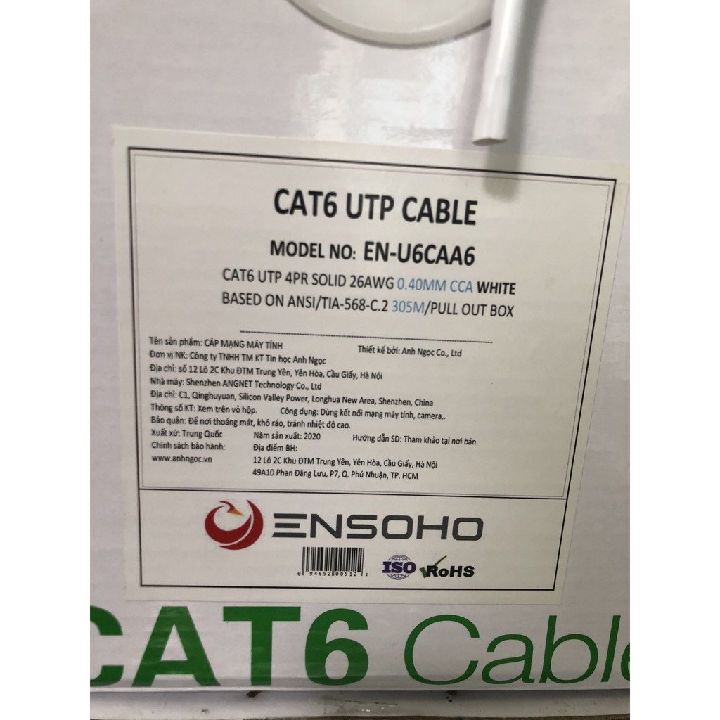 Dây cáp mạng ENSOHO CAT6 UTP EN-U6CAA6 hàng chuẩn Anh Ngọc phân phối - 60m 65m 70m 75m 80m 85m 90m 95m 100m
