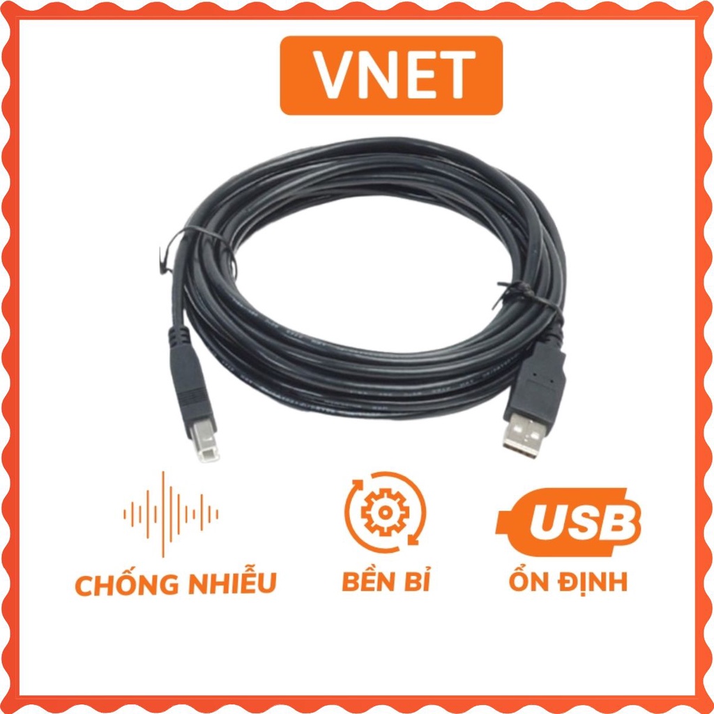 Dây cáp máy in 1M 1.5M 3M 5M ĐEN chống nhiễu cao cấp chuẩn usb 2.0 chất liệu nhựa tốt VNET-DMI03