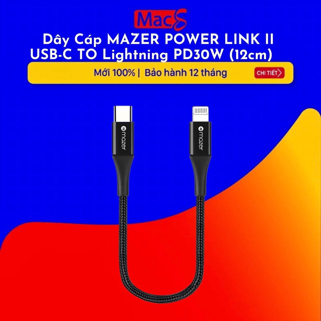 Dây cáp MAZER POWER LINK II USB-C TO Lightning PD30W (12cm), sản phẩm chuyên dụng giúp hỗ trợ sạc nhanh chóng, tiết kiệm thời gian.