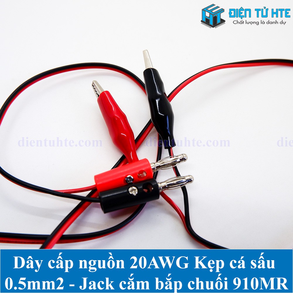 Thiết Bị Điện Gia Dụng > Mạch điện & Phụ tùng > Ổ cắm điện & Dây nối || Dây cấp nguồn 20AWG 0.52mm2 đầu kẹp cá sấu 35mm - Jack cắm bắp chuối 910MR Đỏ+ĐenCòn hàng