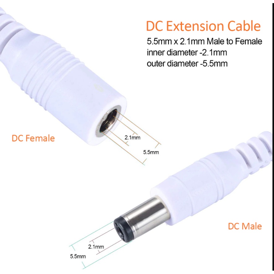 Dây Cáp Nối Dài Dc 1M 1.5M 3M 5M 2.1mm x 5.5mm 12V Cho Dây Đèn LED Camera CCTV
