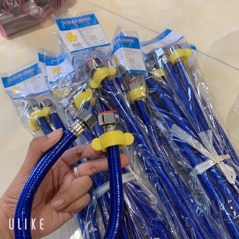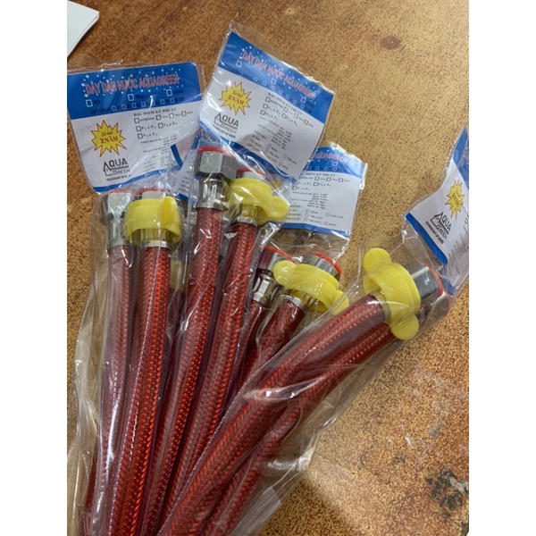 Dây cấp nước bình nóng lạnh tặng roăng 40 60 cm aqua ( 3 lớp ) xanh hoặc đỏ.Dây cấp nước 40cm 60cm nóng lạnh cấu tạo 3 lớp gồm : 1 lõi cao su epdm , 1 lớp lưới đan 10 inox 304 và 1 lớp nhựa bảo vệ lớp lưới .
