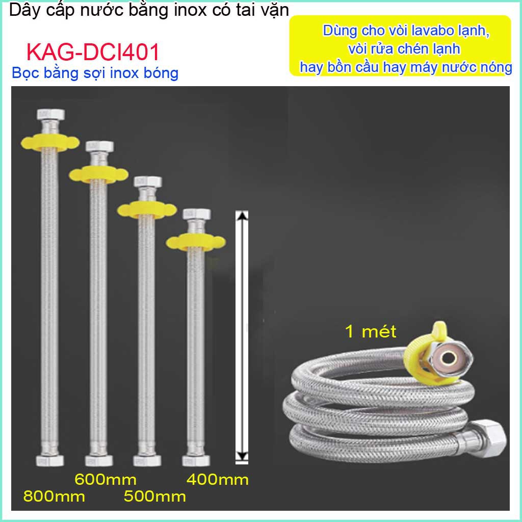 Dây cấp nước 4 tấc vòi nước, dây cấp nước inox có tai vặn KAG-DCI401