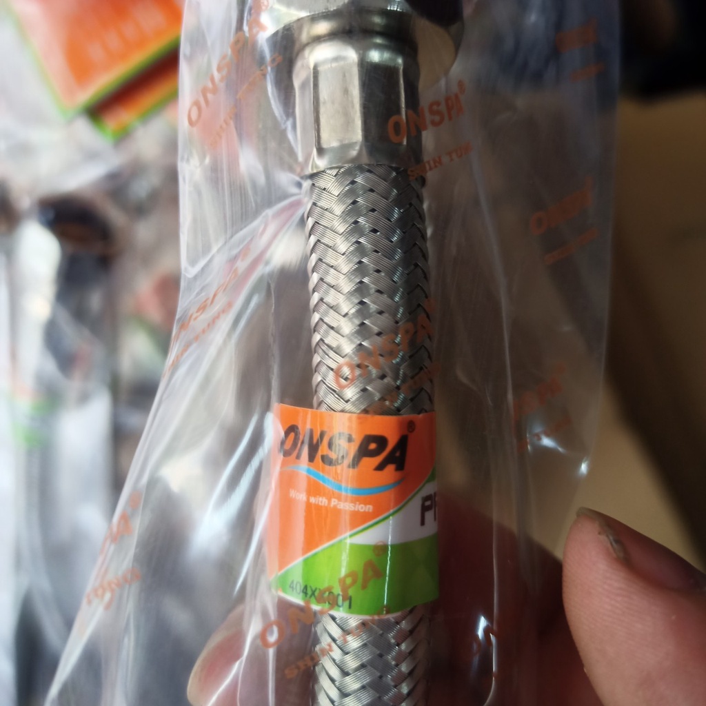 Dây cấp nước , bồn cầu , bồn rửa mặt , bình nóng lạnh ONSPA lưới inox 304 chịu nước nóng + áp lực ốc đồng
