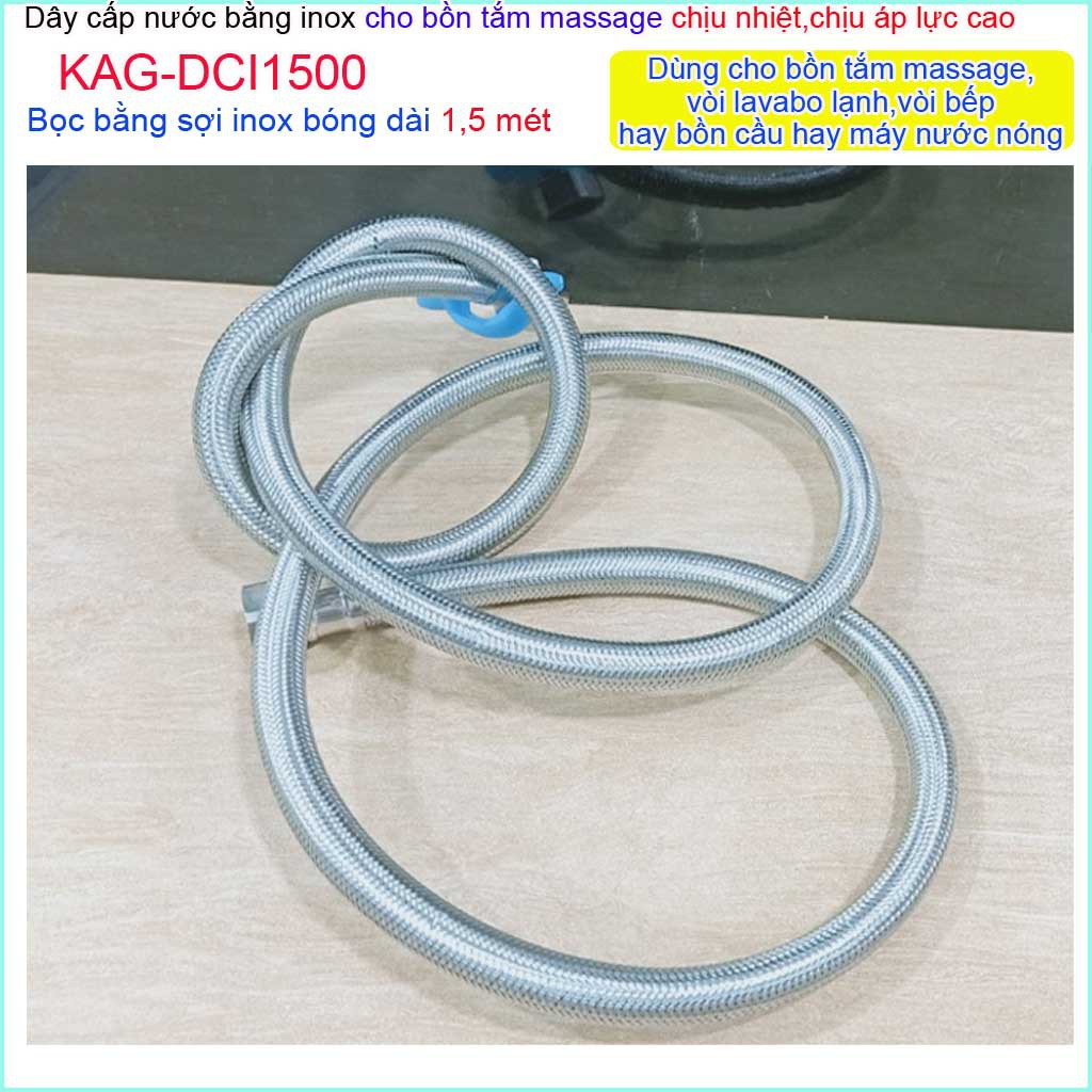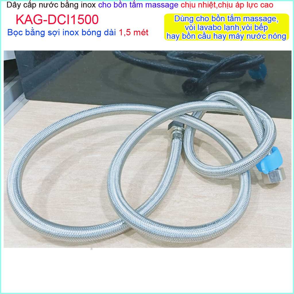 Dây cấp nước Inox chịu nhiệt KAG-DCI1500 (dài 150cm), dây cấp chịu áp 1.5m dây dẫn nước bình nước nóng lạnh