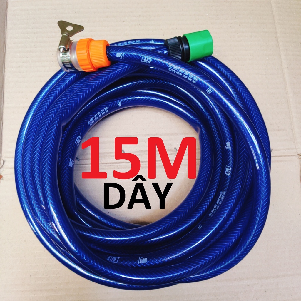 Dây cấp nước máy rửa xe gia đình 15m, dây dẫn nước đầu vào, đầu nối vòi máy nước tiện dụng có siết đai