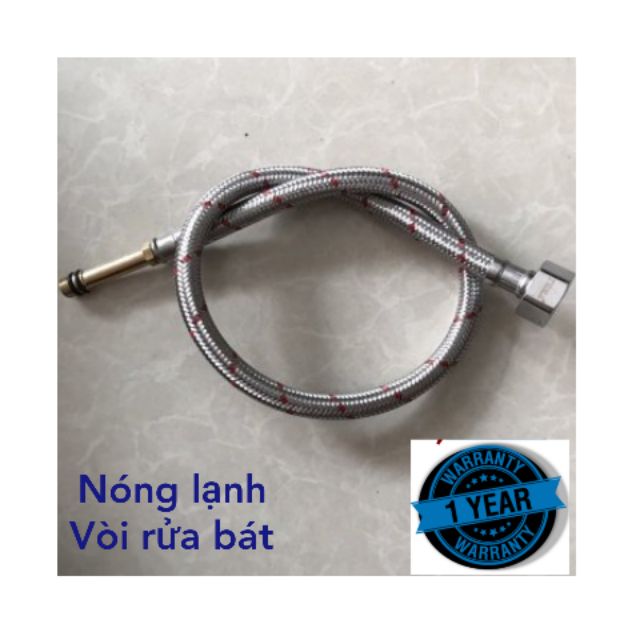 * Chất liệu : bên trong dây cấp là lõi cao su Epdm chịu được nóng lạnh . Bên ngoài dây cấp có lớp lưới inox 304 bao quanh lõi cao su Epdm giúp dây cấp nước chịu được áp lực nước