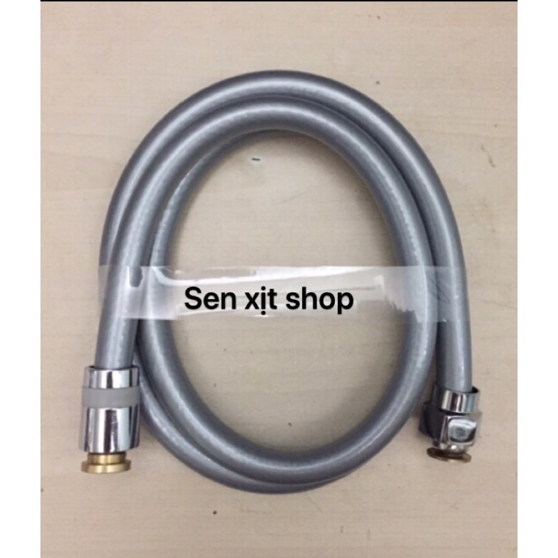 Dây cấp nước dùng cho vòi sen tắm vòi xịt vệ sinh bằng nhựa PVC màu xám , chịu áp lực nước cao , thích hợp với nước chung cư , nhà cao tầngHai ốc bằng đồng mạ crom chống ố luôn sáng bóng , có ốc đồng chống xoắn và xoay được 360 độ , sản phẩm bền đẹp