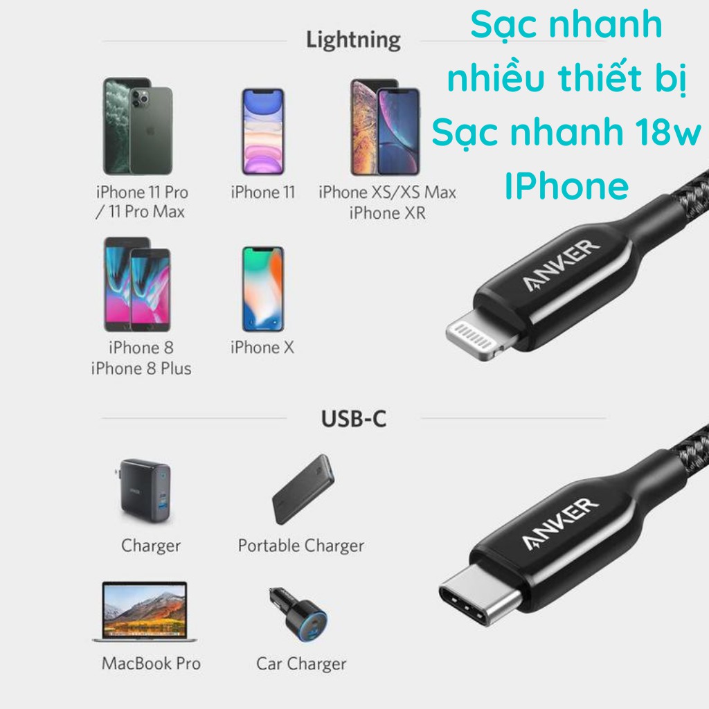 Dây cáp sạc nhanh iphone anker A8842 0.9m Usb-C to Lighting thế hệ 3 cho ipad iphone 8 X Xs Xr 11 12 13 pro max tistore