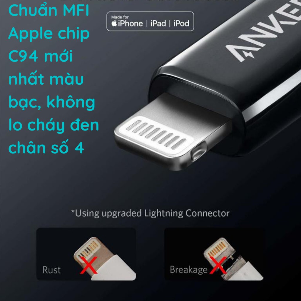Dây sạc nhanh iphone type c to lightning anker a8842