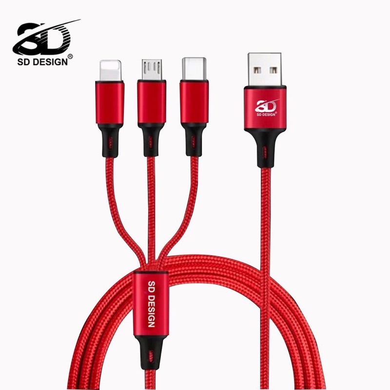Dây cáp sạc 3 đầu bọc dù chính hãng SENDEM hỗ trợ sạc nhanh phù hợp nhiều dòng máy (chân sạc lightning /Micro /Type-C)