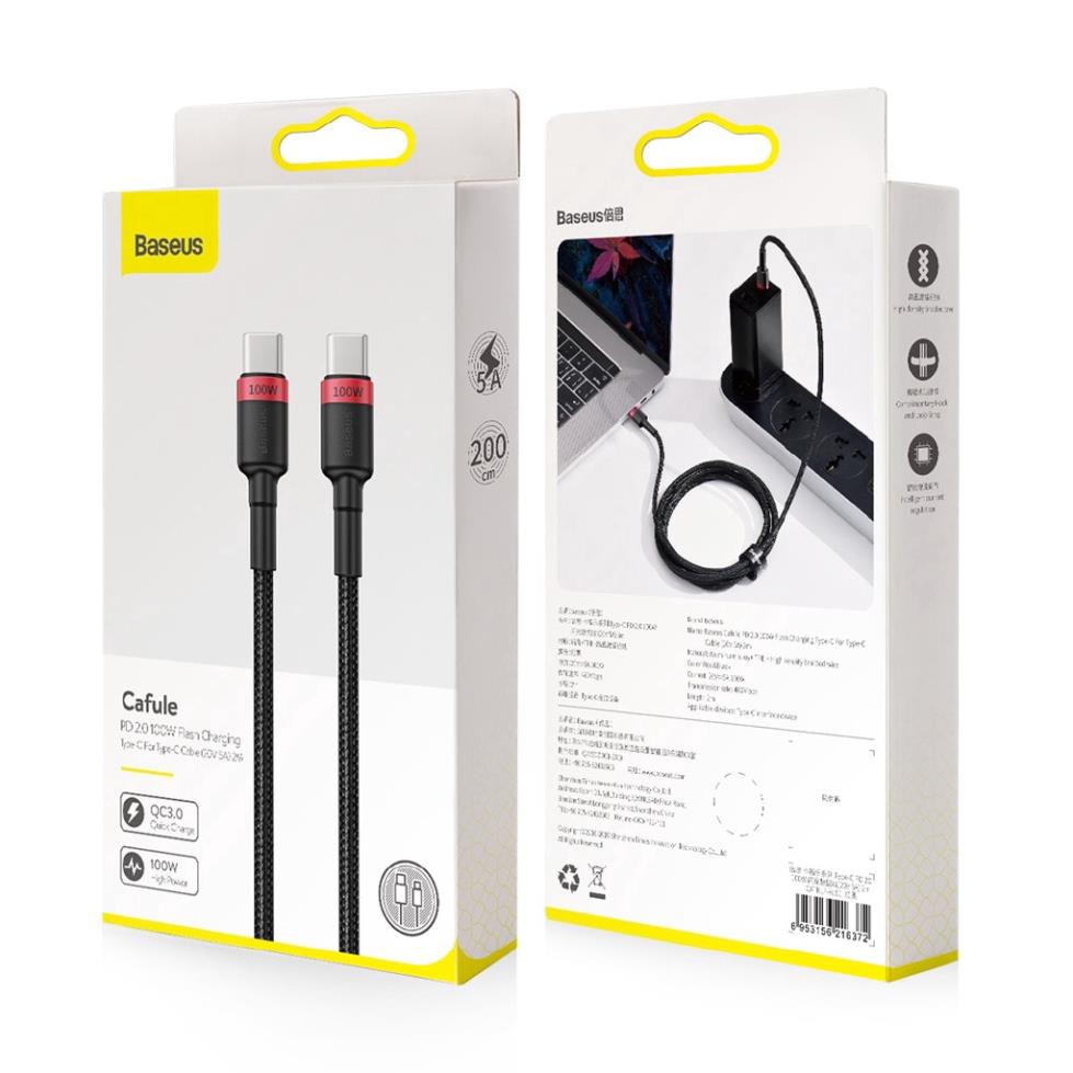 Dây cáp sạc Baseus từ USB C sang USB Type-C hỗ trợ QC 4.0 100W cho Xiaomi /Huawei /MacBook