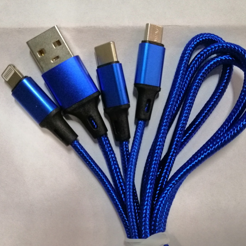 Cáp Sạc Bọc Dù Cáp Sạc Bọc Dù 3 Đầu chỉ có chức năng sạc (không thể truyền dữ liệu máy tính)Đầu cắm vào củ sạc là USB, 3 đầu ra để cắm vào điện thoại là :