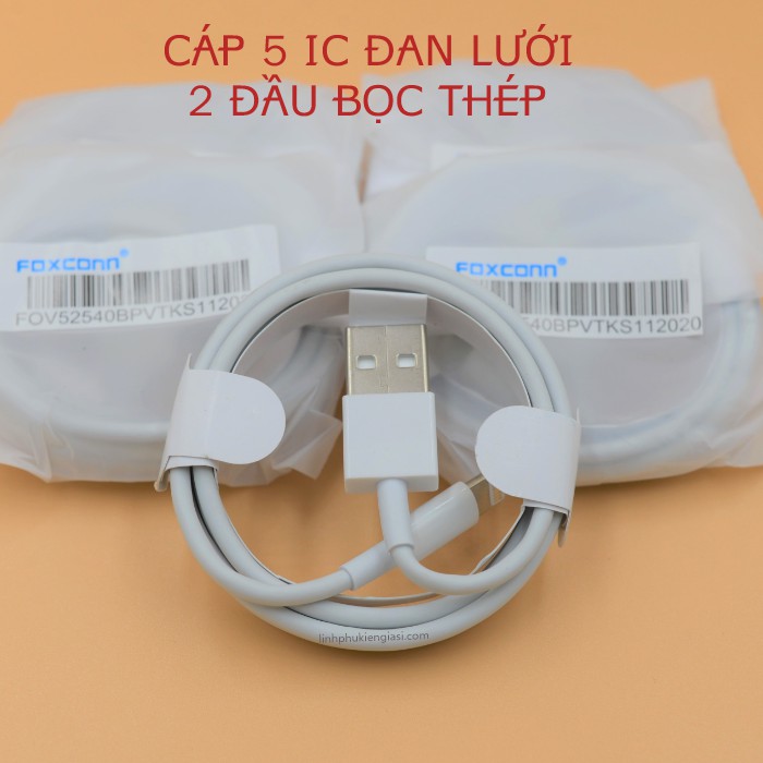 Dây cáp sạc cho iphone cổng lightning 5ic đan lưới, bọc thép 2 đầu siêu bền foxconn
