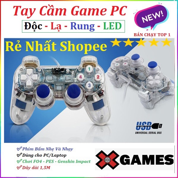 Giới thiệu 𝓒ó 𝓡𝓾𝓷𝓰 + 𝓛𝓮𝓭 Tay cầm chơi game PC Cổng USB Có Đèn Led + Rung Trong Suốt Ucom Chơi FO4, Genshin Impact, Pes 2022