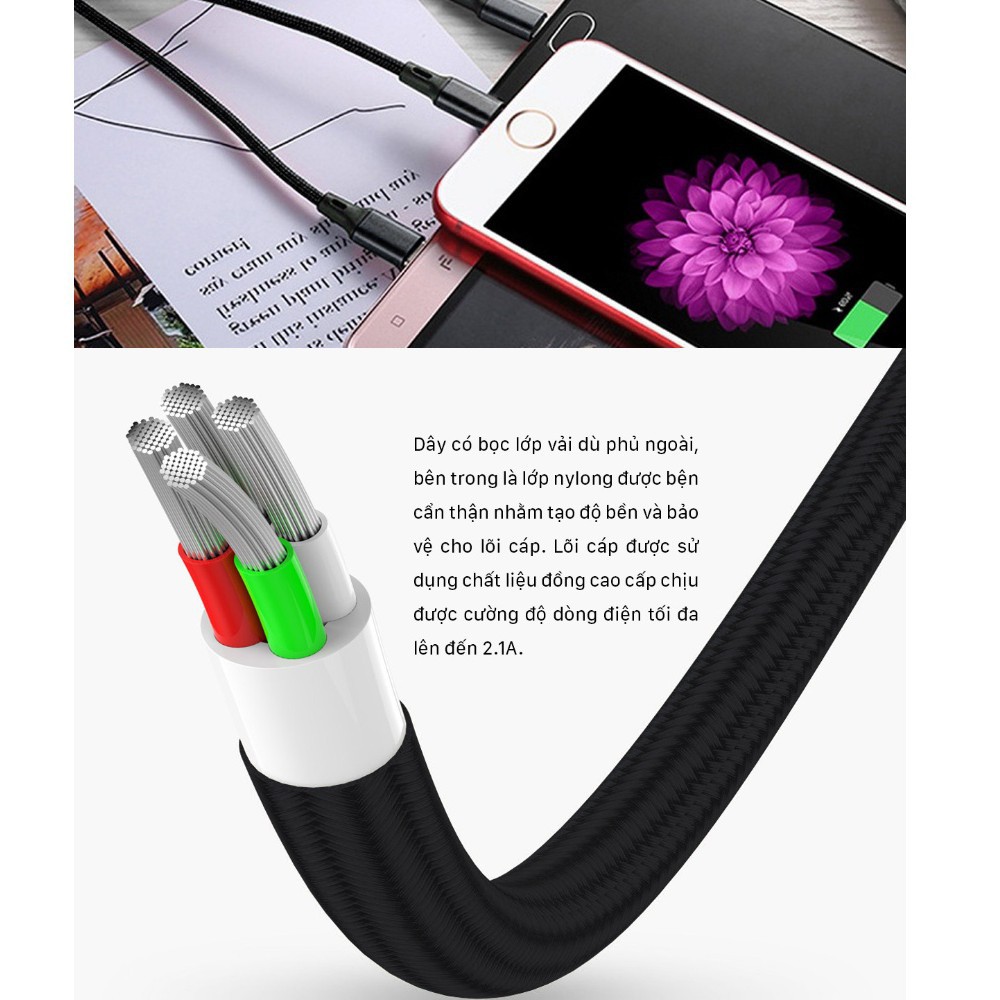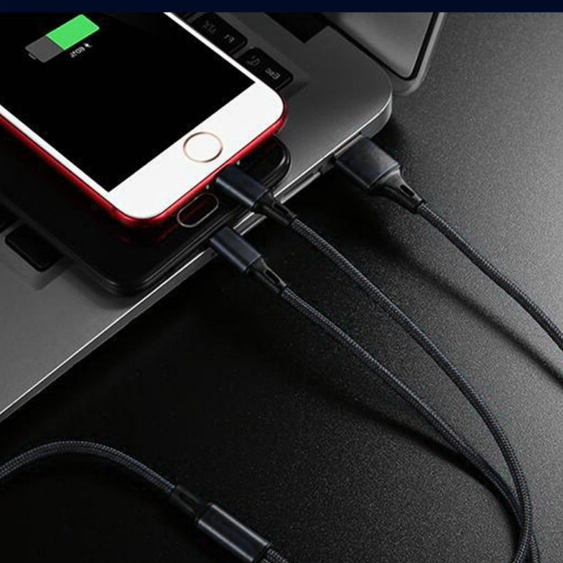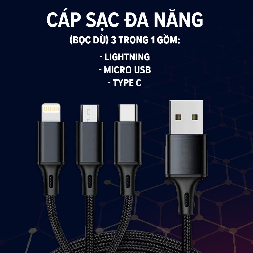 Cáp sạc đa năng 3 đầu bọc dù siêu bền dài 1M2