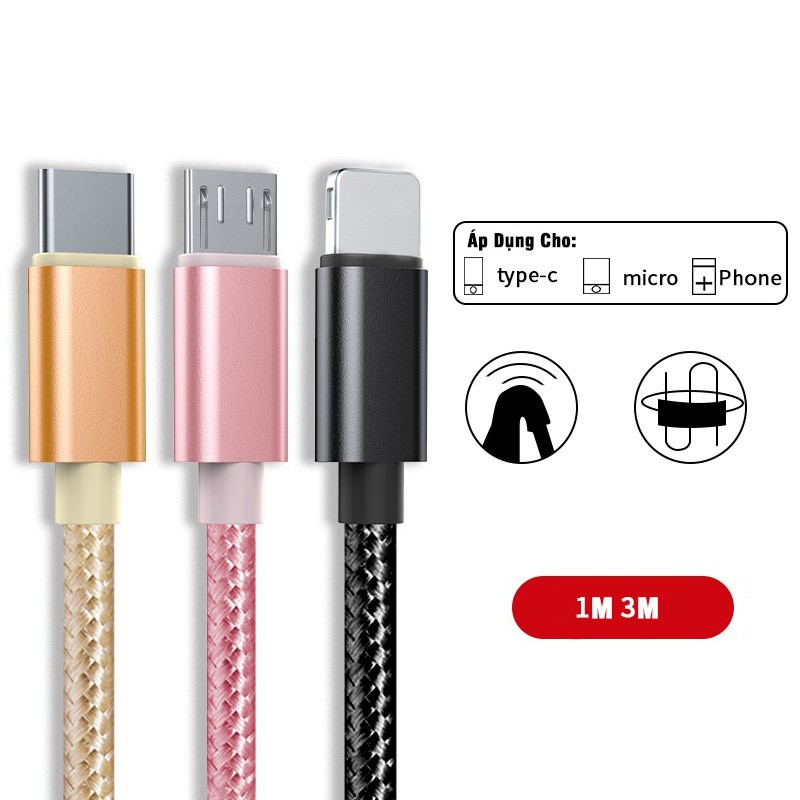 Dây Cáp Sạc Dây Dù dài 1m và 3m Cho Phụ Kiện Tai nghe Bluetooth i12 Pin Dự Phòng Awifi L2-3