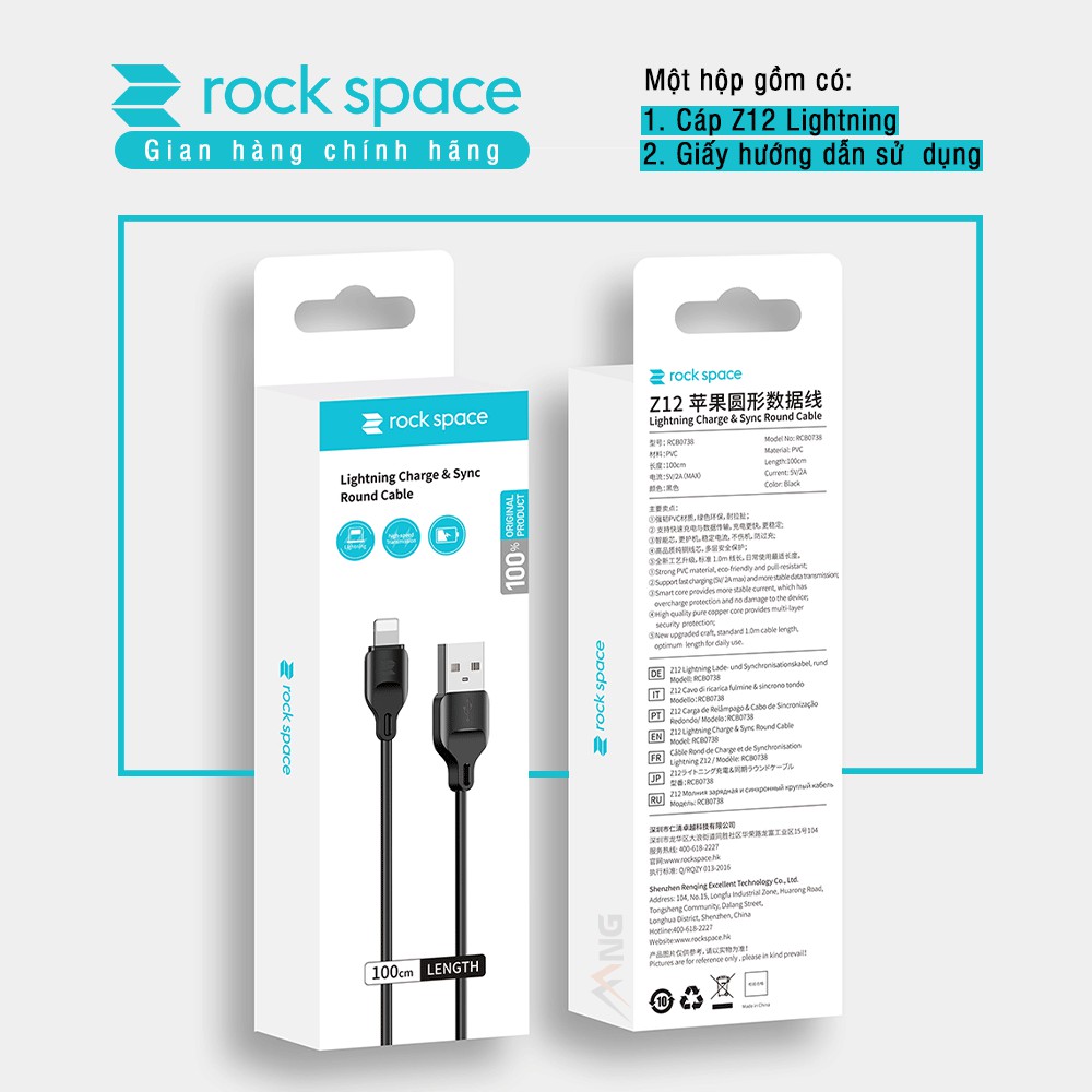 Dây Cáp Sạc iPhone Chính hãng RockSpace Z12, sạc nhanh ổn định không nóng máy độ dài 1m bảo hành 12 tháng 1 đổi 1