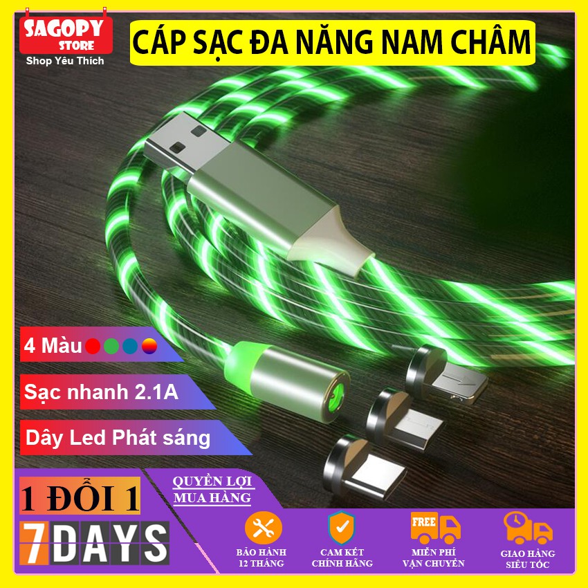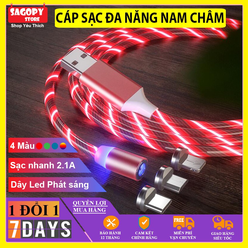 Sản phẩm Dây cáp sạc lightning, Samsung type c, micro usb android, dây cáp sạc điện thoại nam châm có đèn Led chính hãng giá rẻ Sagopy bao gồm:❶ Dây cáp sạc bằng dù siêu chắc có 4 màu: Đỏ/ Nhiều Màu/ Xanh lá/ Xanh lam