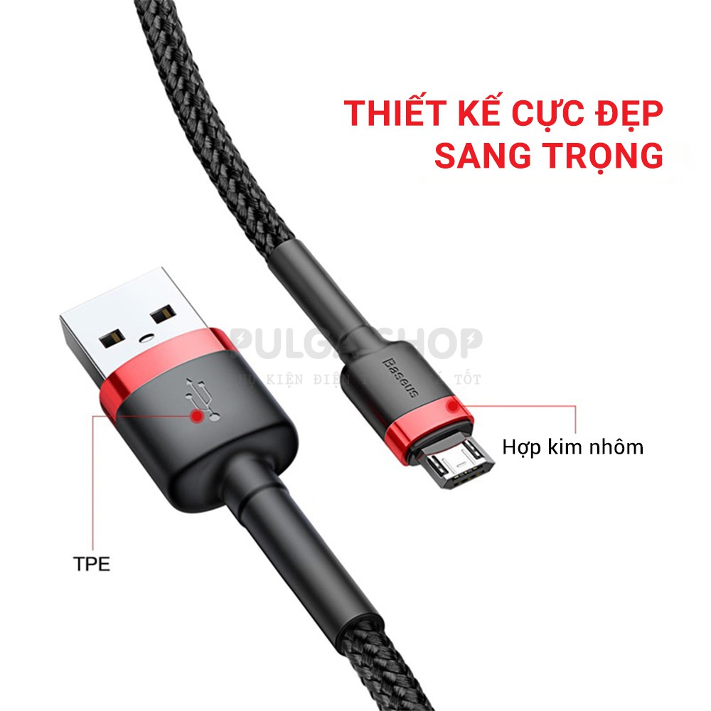 Dây Cáp Sạc Micro USB Baseus Sạc Nhanh 2.4A QC3.0 Cho Điện Thoại Android Samsung/ Oppo/ Huawei/ Xiaomi/ Vivo/ Realme