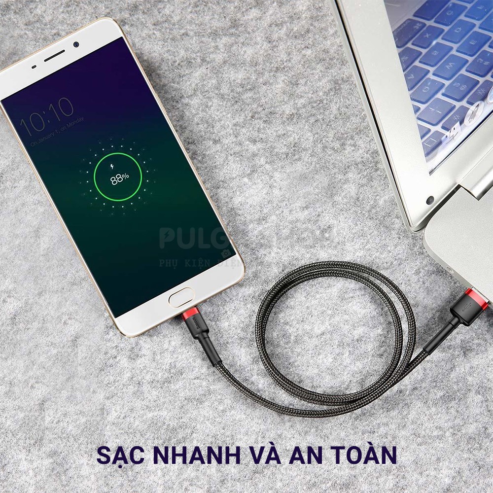 ⚡ Cáp Micro USB Baseus hỗ trợ dòng lên đến 2.4A, sạc nhanh QC3.0 cho tốc độ sạc nhanh hơn các loại cáp thông thường