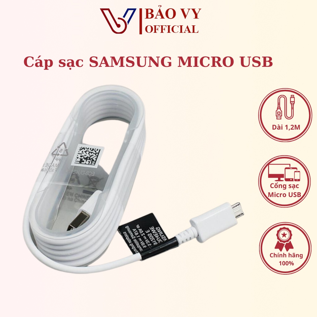 - Cáp sạc SS Micro USB V8 chính hãng dùng kết nối các thiết bị điện thoại với bộ sạc điện, máy tính và các thiết bị ngoại vi khác. Cáp Sạc SAMSUNG Micro USB V8 chính hãng có khả năng chịu tải tốt, tốc độ truyền dữ liệu ổn định và nhanh, độ bền cao