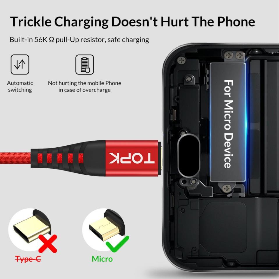 Giới thiệu Dây Cáp Sạc TOPK Đầu Ra Micro USB / Type C/ Lightning Sạc Nhanh Dây Nylon Bện Dài 1m Chắc Chắn