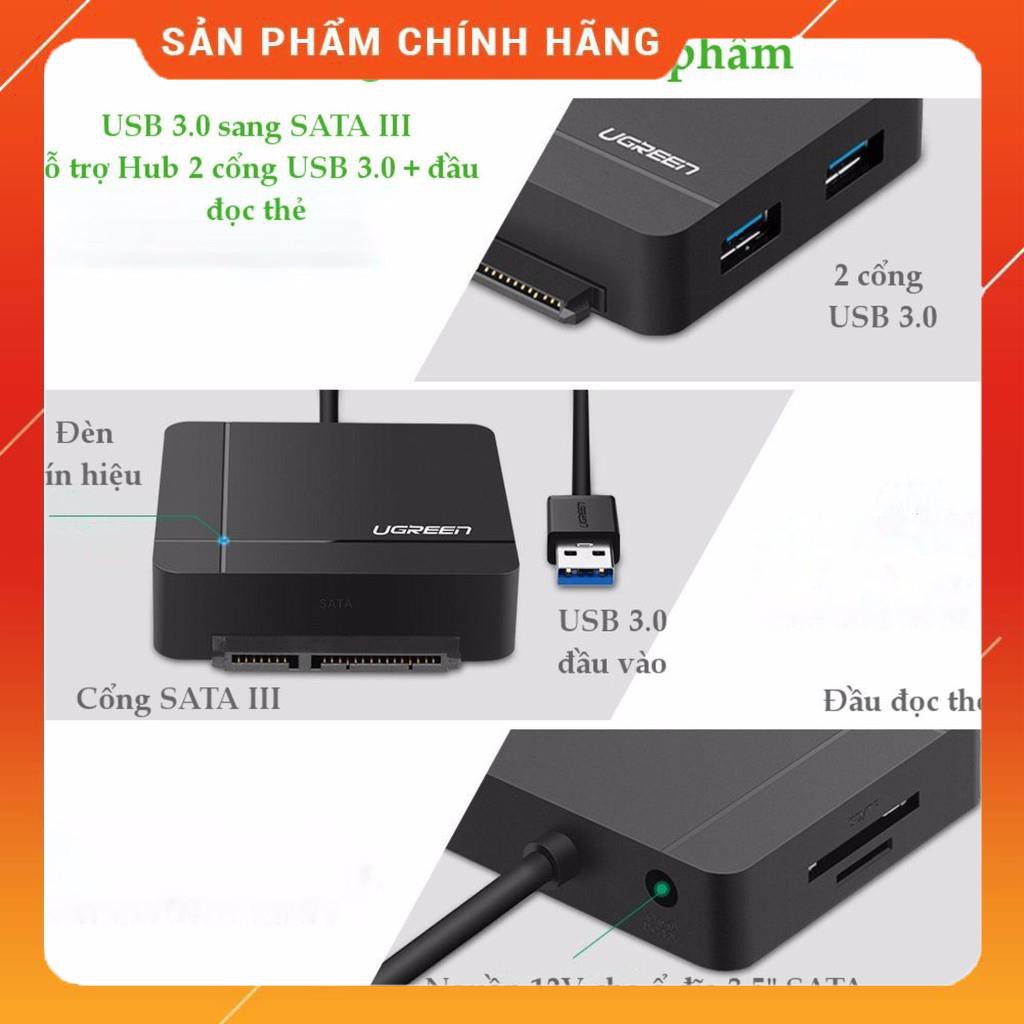 Máy tính & Laptop > Phụ Kiện Máy Tính > Bộ chia cổng USB & Đọc thẻ nhớ || Dây cáp USB 3.0 sang SATA III + Hub 2 cổng USB 2.0 + Đầu đọc thẻ kèm nguồn 12V UGREEN US231 30918 dailyphukienCòn hàng