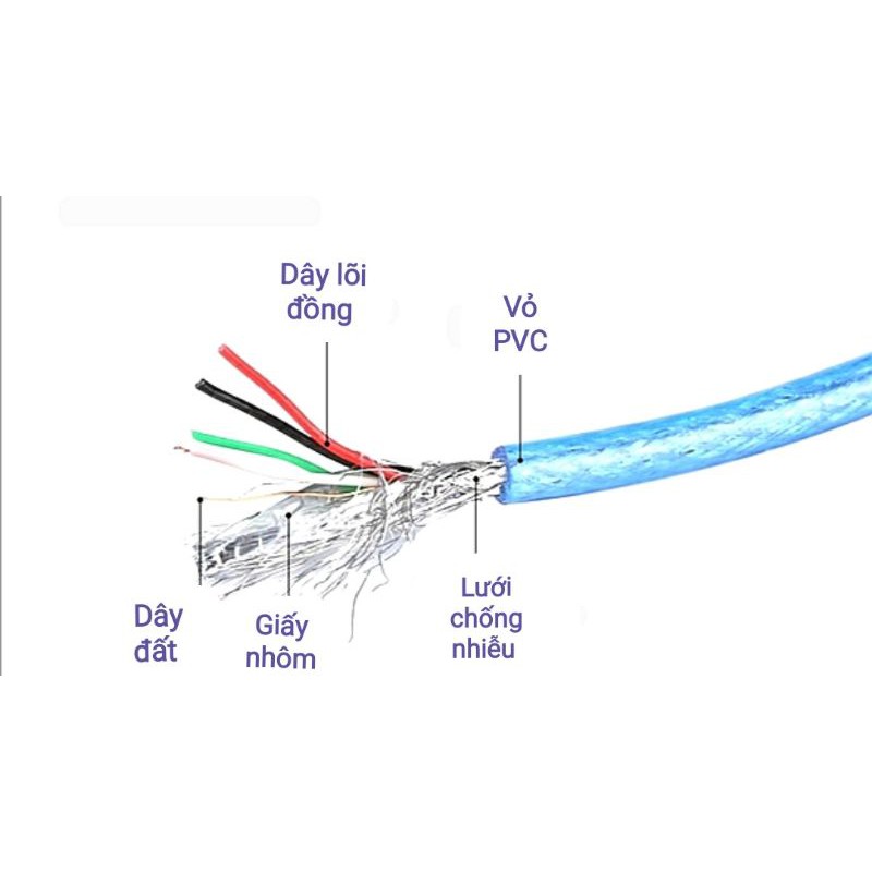 Dây cáp USB chuyển đổi đầu USB sang đầu USB mini 1.5m màu xanh, màu đenDây đường kính ngoài 5mm, bên trong lõi sợi bằng đồng, có cuộn chặn ferit (cuộn sắt từ) chống nhiễu, 1 đầu chuẩn A type male (đực), 1 đầu chuẩn Mini USB 5P (hay còn có tên khác là chuẩn T) đều được đúc nhựa chắc chắn, cầm nắm dễ dàng khó bị tuột.