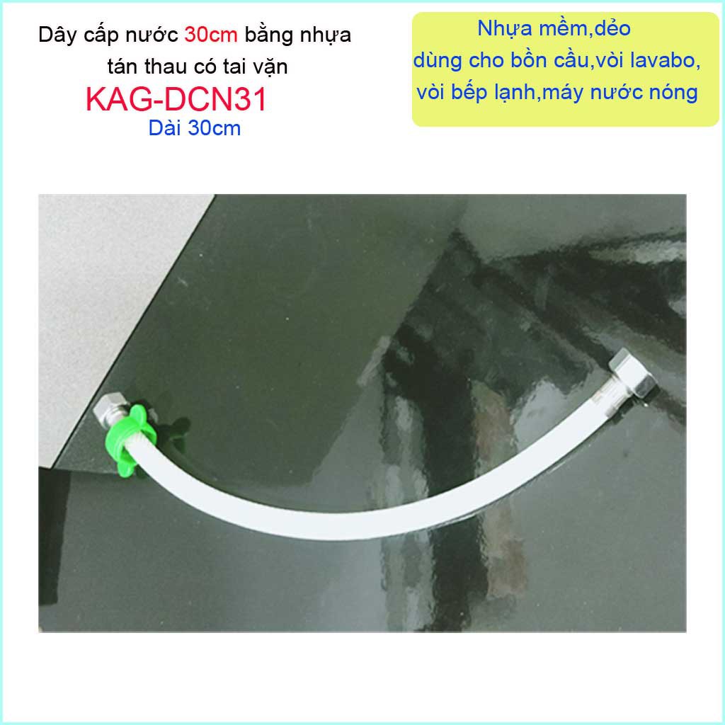 Chiều dài dây cấp : KAG-DCN31 dài 30cm => KAG-DCN41 dài 40cm => KAG-DCN51 dài 50cm => KAG-DCN61 dài 60cm =>KAG-DCN81 dài 80cm => KAG-DCN101 dài 1m (100cm) =>KAG-DCN121 dài 1.2m (120cm) =>KAG-DCN151 dài 1.5m (150cm) => KAG-DCN201 dài 2m (200cm)