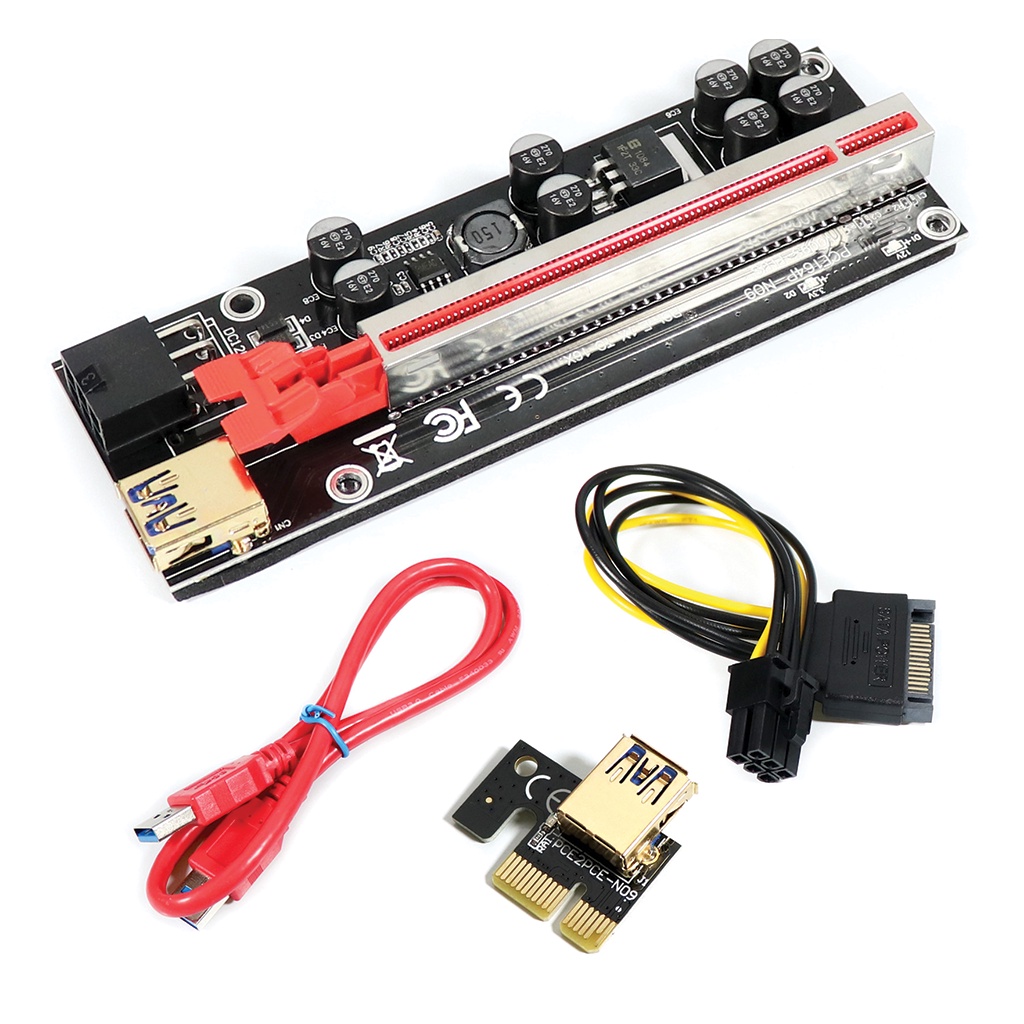 SẢN PHẨM: Dây Card Riser 009SPlus đen đỏ Có LED cổng USB vàng Mới 100% - Đào coin lắp VGA rời - Riser pci-e 1x to 16x dây usb 3.0 có cổng đơn và cổng 3Các tính năng: