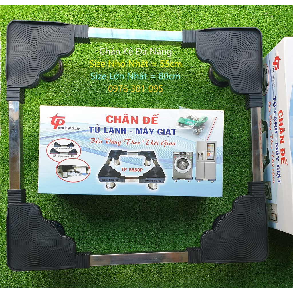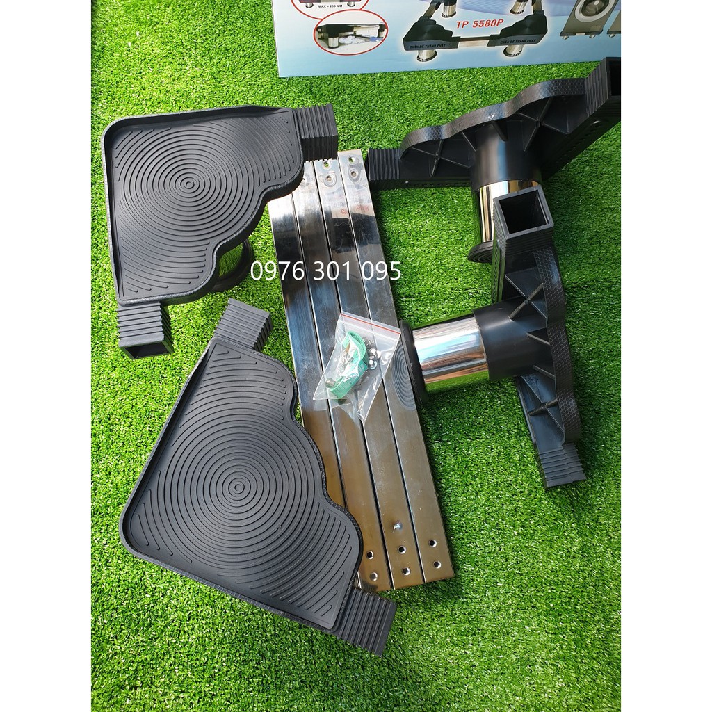 - Chân đế có thể thay đổi được cả chiều dài và chiều rộng tùy chỉnh theo kích thước máy giặt, tủ lạnh.