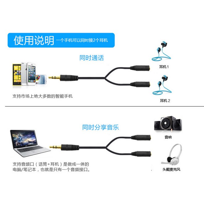 Dùng để chia từ jack 3.5 ra 2 loa hoặc 2 tai nghe