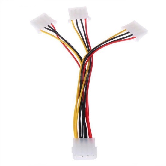 Dây chia nguồn Molex (IDE) 1 ra 3Sử dụng để mở rộng thêm số cổng nguồn IDE (Molex) từ nguồn (PSU) của máy tính, giải quyết tình trạng thiếu đầu cấp nguồn khi cần cắm nhiều thiết bị hơn số đầu IDE của PSU.