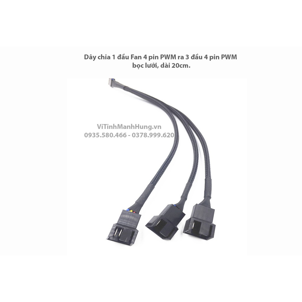 Máy tính & Laptop > Linh Kiện Máy Tính > Quạt và Tản Nhiệt || Dây chuyển 1 đầu Fan 4 pin PWM ra 2/3 đầu 4 pin PWM Fan CPU, bọc lưới, dài 20cm.Còn hàng