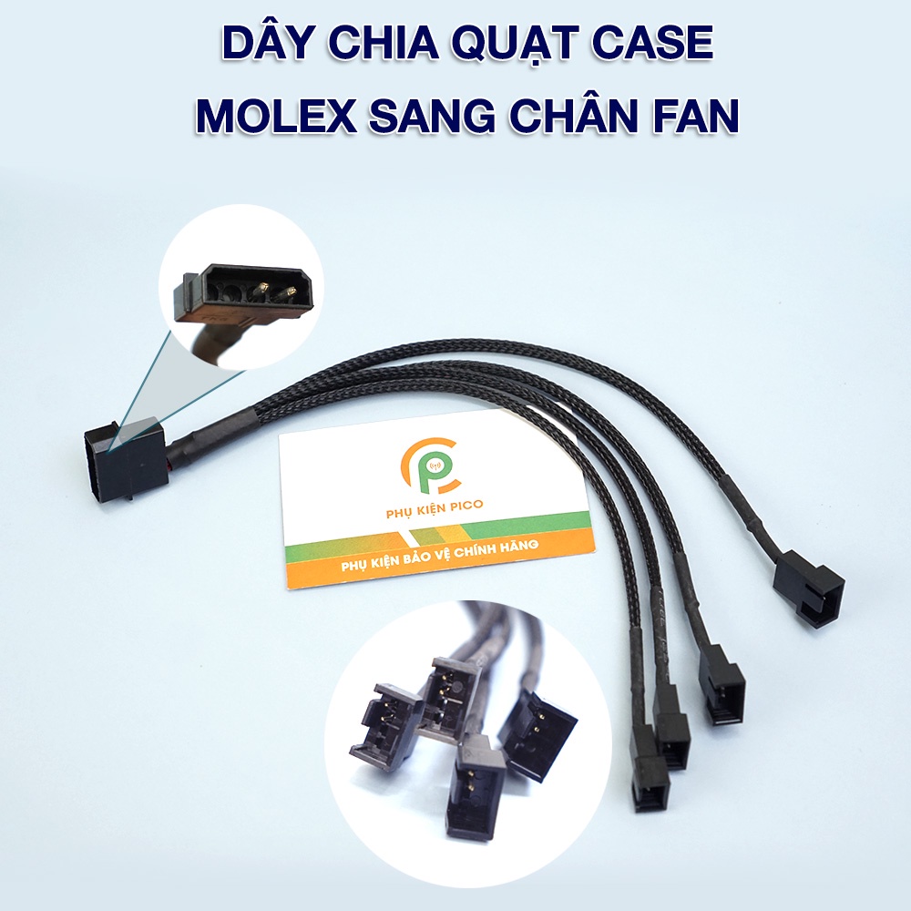 - Bộ sản phẩm gồm có: 1 dây chuyển đổi PSU Molex sang 4 Pin 1 ra 4.