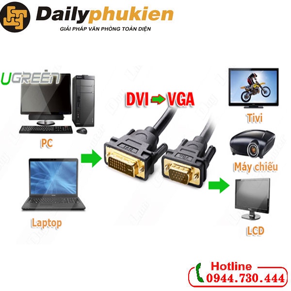 Giới thiệu Dây chuyển DVI 24+5 sang VGA 3m UGREEN 11618 dailyphukien