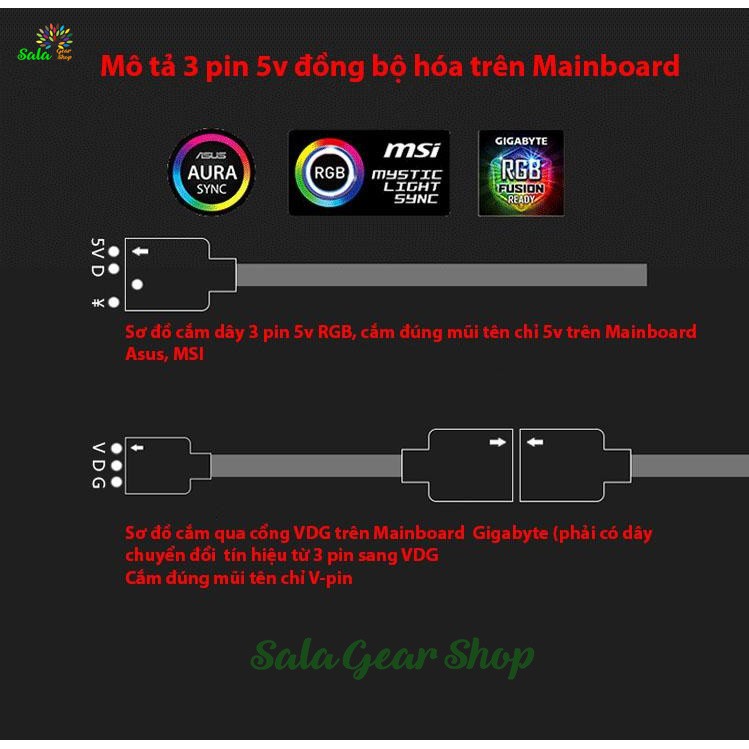 - Gigabyte Fusion 1.0: 5v 3pin ==> 3 chân liền
