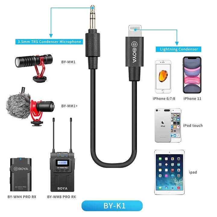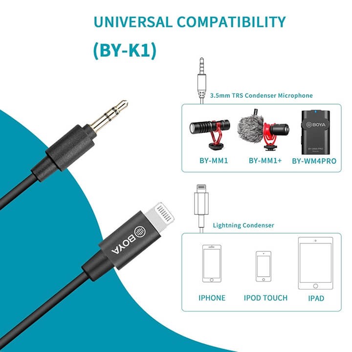 Dây chuyển mic máy ảnh sang Lightning MFi BOYA BY-K1Hãng sản xuất: BOYA