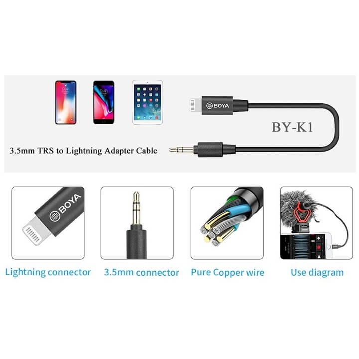 Thiết Bị Âm Thanh > Micro thu âm || Dây chuyển mic máy ảnh sang Lightning MFi BOYA BY-K1Còn hàng