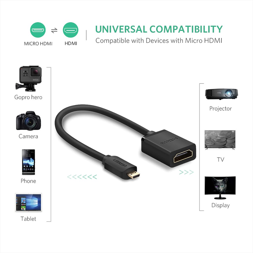 Cameras & Flycam > Phụ kiện máy ảnh > Khác || Dây Chuyển Micro HDMI Sang HDMI (Female) 2.0 - Ugreen 20134 Chính Hãng -Hỗ trợ 4K*60HzCòn hàng