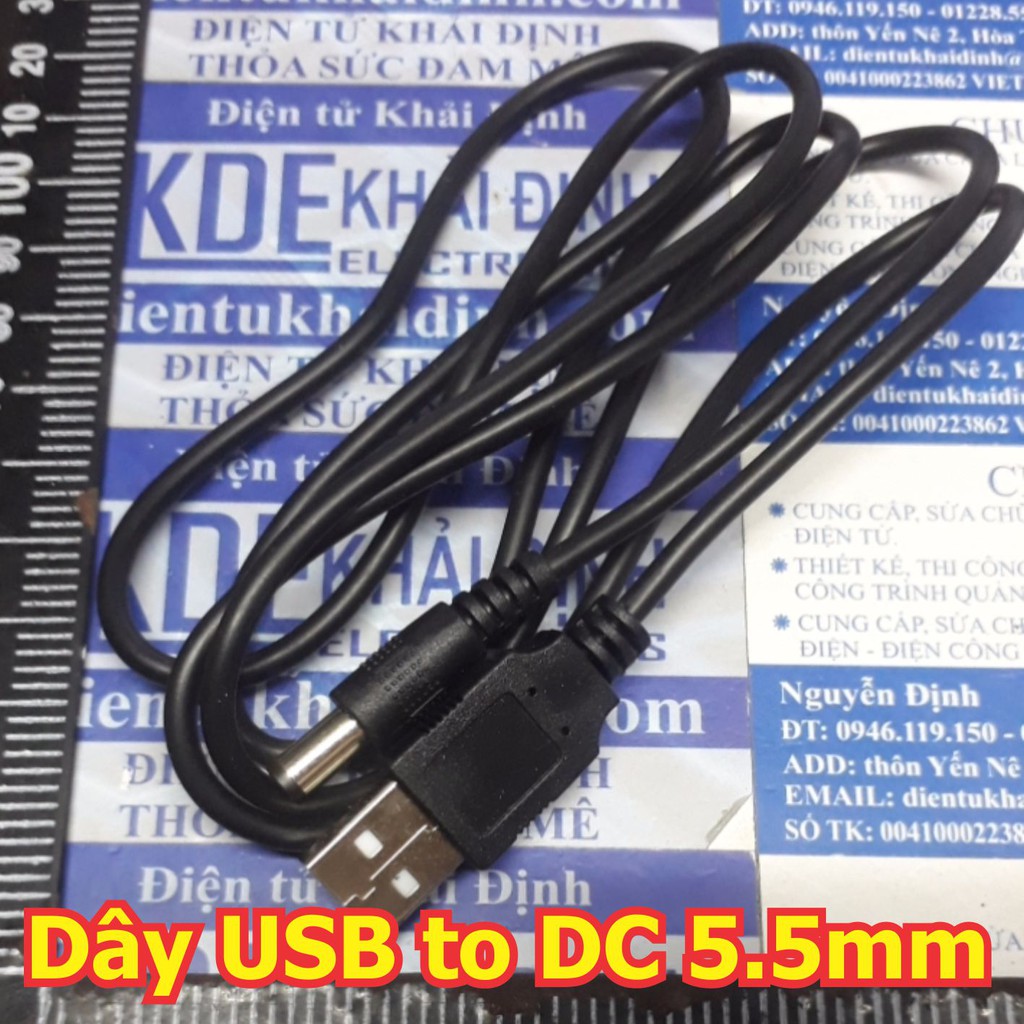 Dây cáp chuyển từ đầu USB 5V sang cổng DC tròn 5.5x2.1mm dây dài 0.5m 1m kde5398