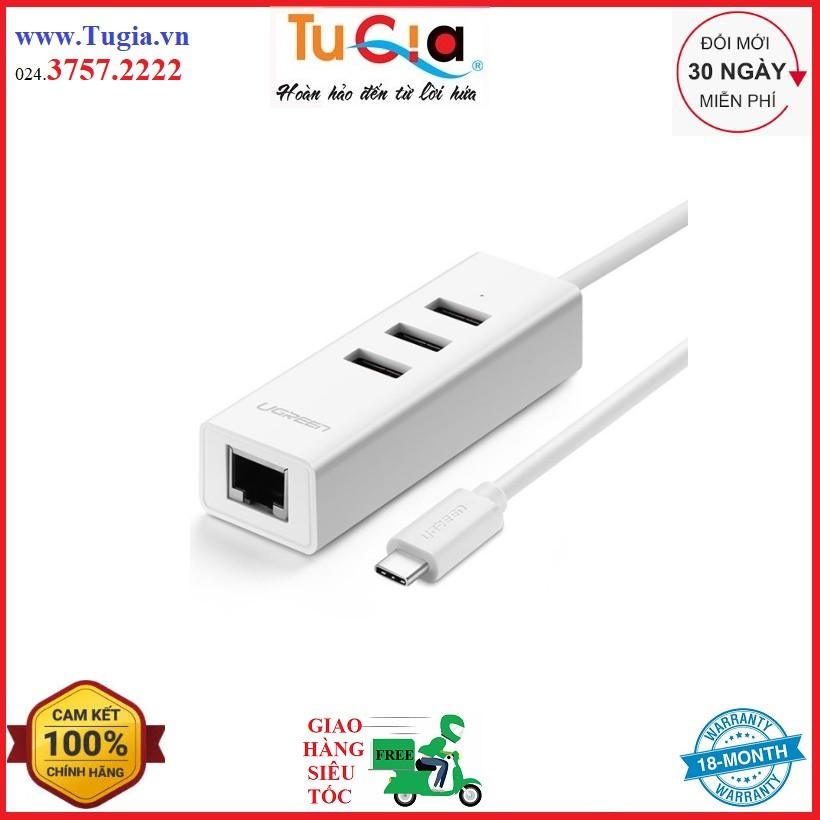 Máy tính & Laptop > Phụ Kiện Máy Tính > Bộ chia cổng USB & Đọc thẻ nhớ || Dây chuyển Type C ra Ethernet+Hub, Ugreen 20792 - Hàng chính hãngCòn hàng
