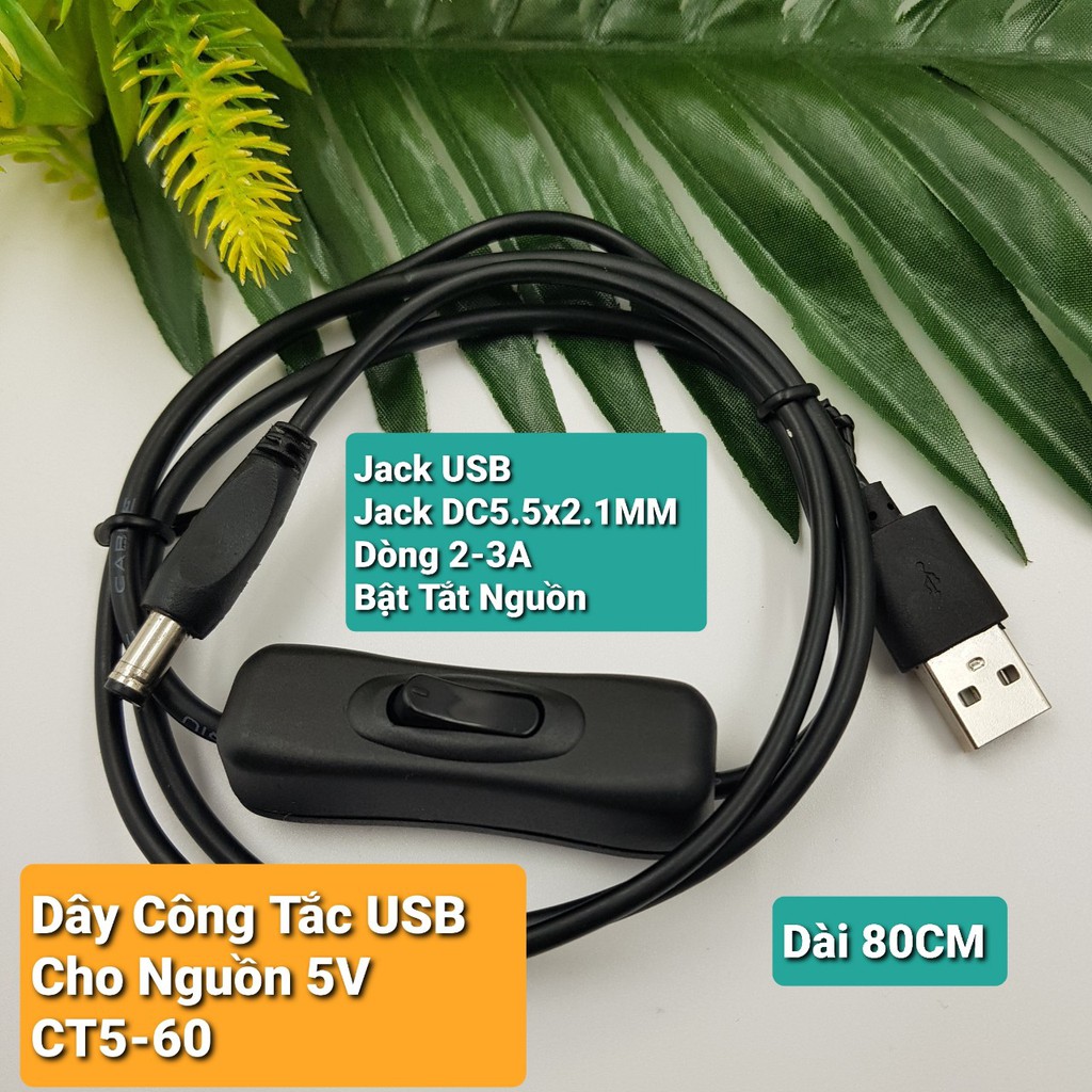 Dây Công Tắc USB Cho Nguồn 5V CT5-60 Dài 80Cm, Công Tắc Cho Quạt, Cho Nguồn