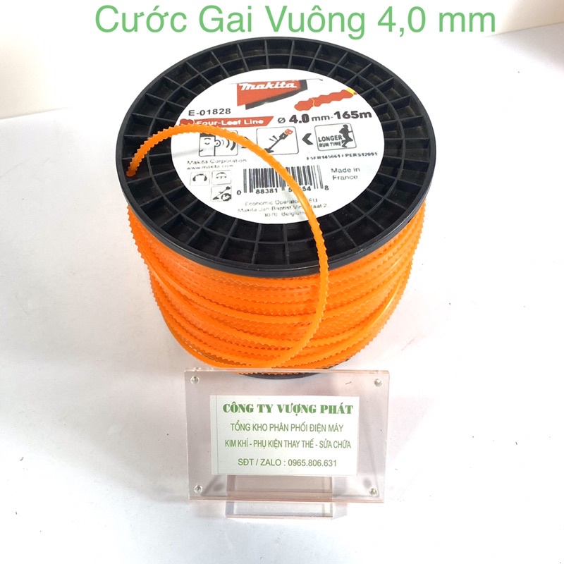 Dây cước cắt cỏ gai vuông MAKITA để lắp vào mâm cước của chúng tôi được sản xuất từ hạt PA ( Poly Amide ) có phủ lớp gel được nhập khẩu trực tiếp từ Nhật Bản. Sản phẩm là sự kết hợp nối của hàng trăm phân tử ny lon 6 tạo ra một loại dây đặc biệt. Đây là một trong những chất liệu được sử dụng rộng rãi nhất trên thế giới để sản xuất các loại cước chất lượng tốt dẻo dai chịu được lực